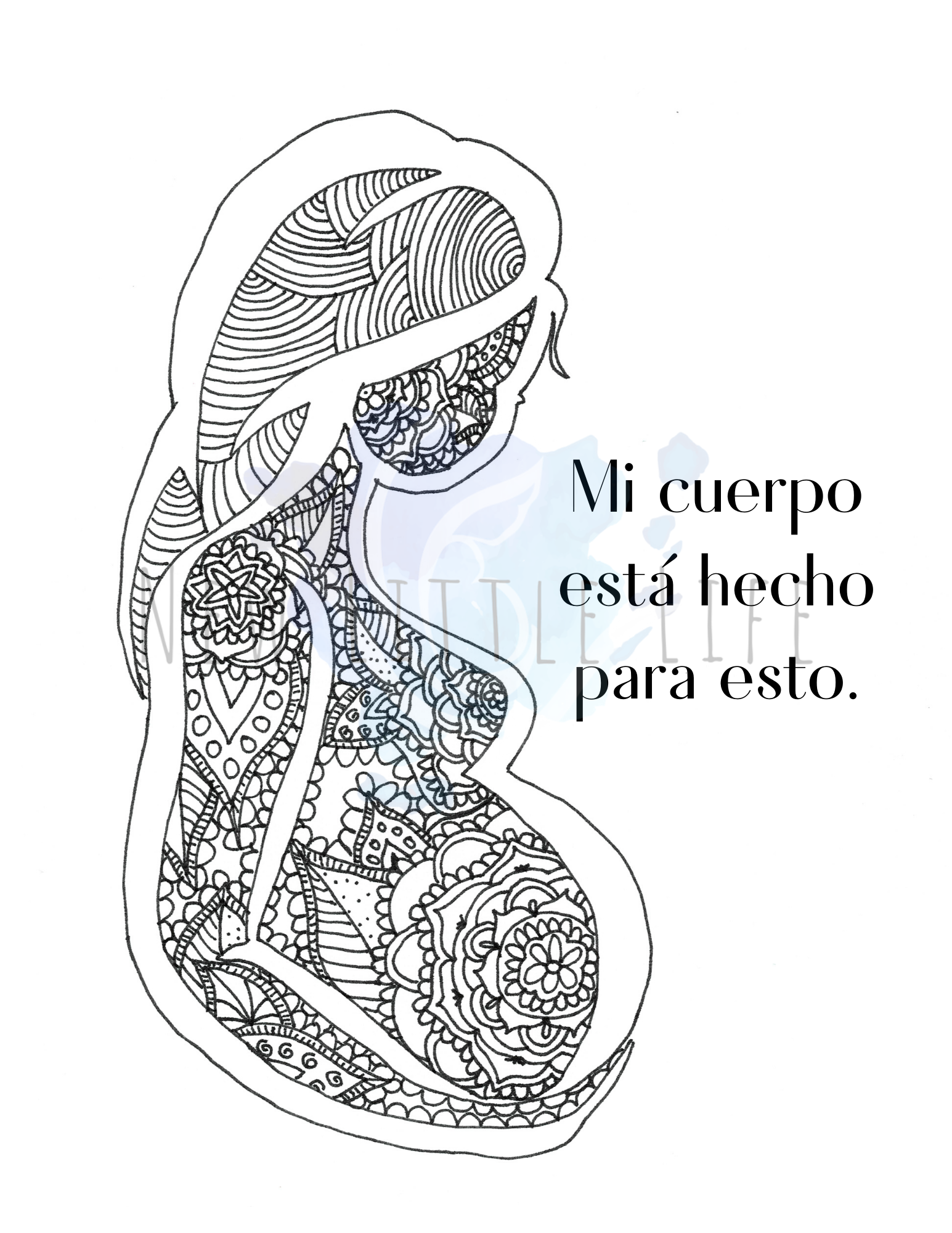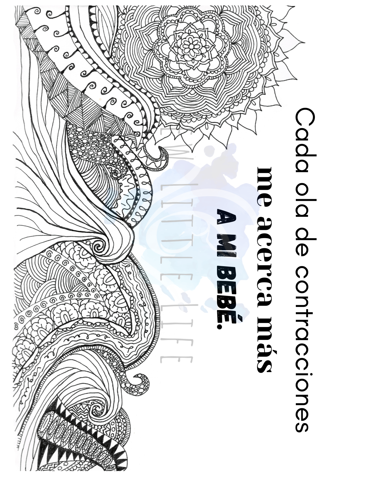 This coloring book includes 20 pages to color with Positive Birth Affirmations in Spanish.