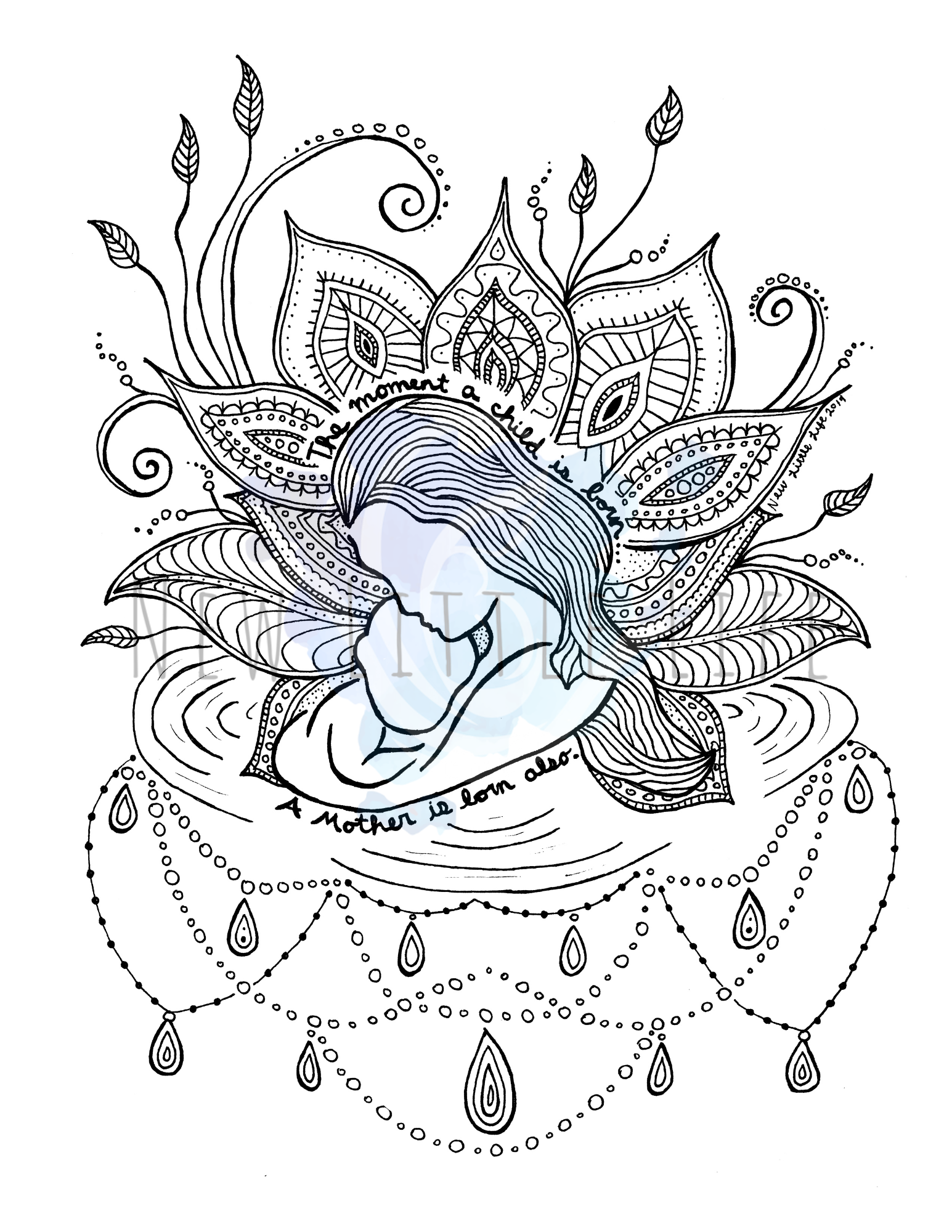 These beautiful mandala style pages can be colored or left in black and white to use as a custom birth affirmation, hang in a nursery, on the wall of your home, display in your birth space, use as a display, coloring during childbirth class, etc.